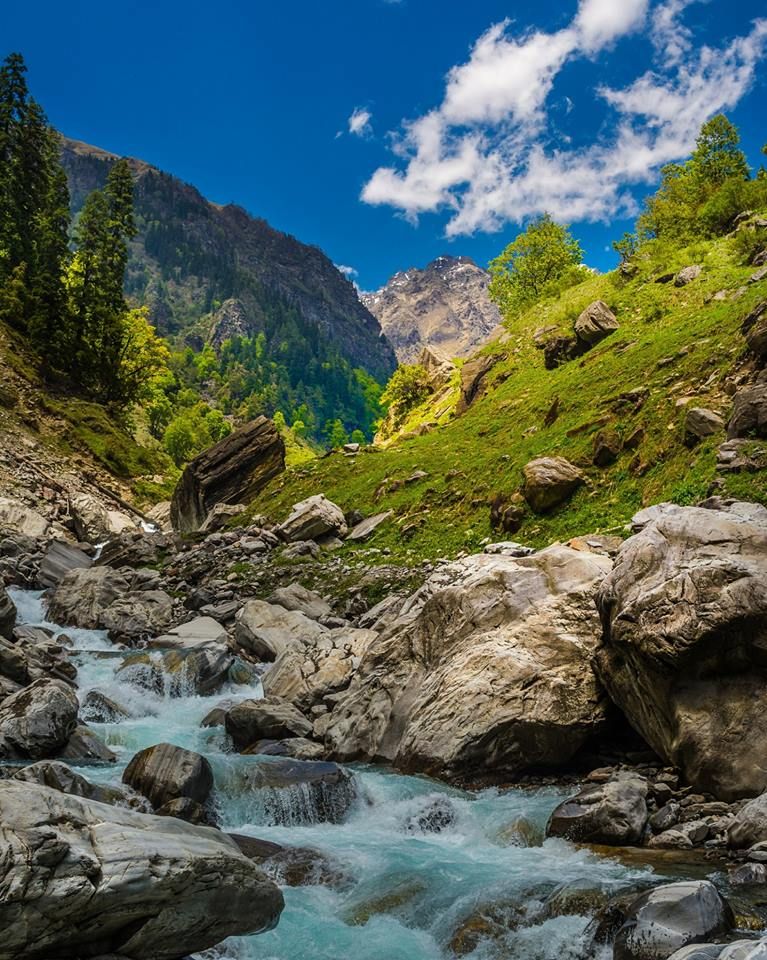 • Begin your trek from the center of Kasol following the left bank of the Grahan Nallah.